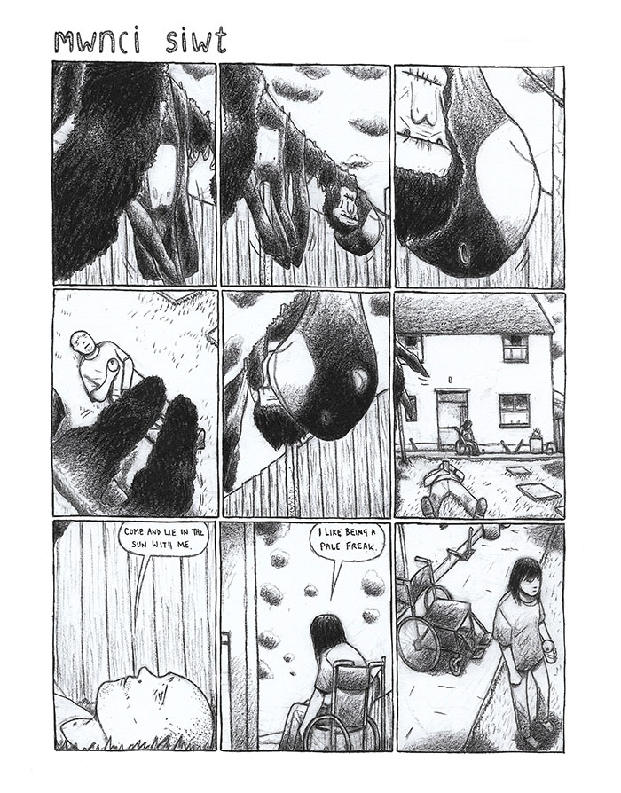 Another Way Out collects three never before seen comics by Carol Swain: Vast New Market, Coming of Age, and a sequence from Mwnci Siwt, her forthcoming graphic novel.